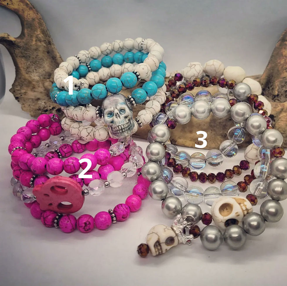 Pink Rhinestone Hearts & Sugar Skull Bracelet